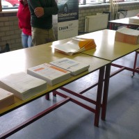 - De voorman kan ondertussen de volledige enveloppen in de dozen stoppen.